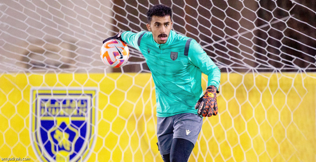 صورة التقطت أمس لمحمد الضليفع، حارس مرمى التعاون، يستعد لتمرير الكرة أثناء التدريبات(المركز الإعلامي ـ التعاون)
