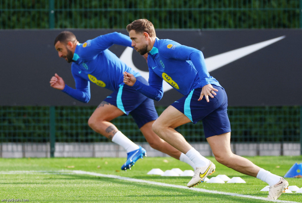 صورة التقطت أمس لجوردن هندرسون وكاير والكر، لاعبي منتخب إنجلترا الأول لكرة القدم، في الحصة التدريبية الأخيرة قبل مواجهة إيطاليا اليوم على ملعب ويمبلي(رويترز)
