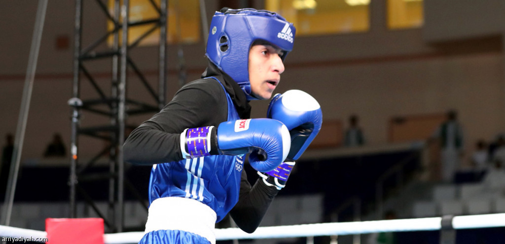 صورة التقطت أمس للسعودية حلا الرشيدي، لاعبة الملاكمة، خلال منافسات الدور نصف النهائي أمام الإماراتية مناهل المخيلي (المركز الإعلامي ـ دورة الألعاب القتالية)