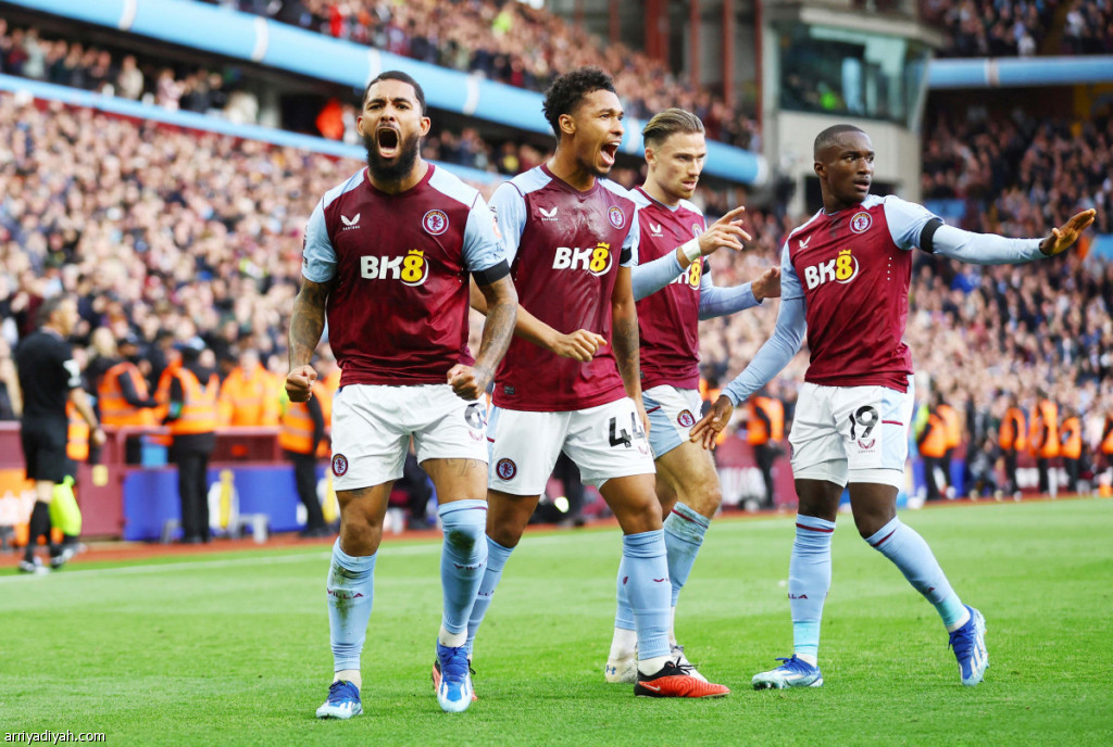 صورة التقطت أمس البرازيلي دوجلاس لويز، لاعب أستون، يحتفل بهدفه الأول مع الفرنسي موسى ديابي والبولندي ماتي كاش والفرنسي أبوبكر كامارا (رويترز)