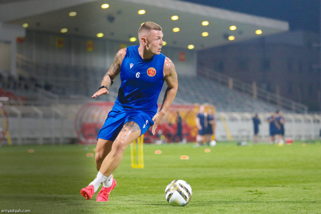 صورة التقطت أمس للإنجليزي ماكس باور لاعب وسط فريق القادسية الأول لكرة القدم يستعد لتمرير الكرة خلال التدريبات الجماعية (المركز الإعلامي - القادسية)