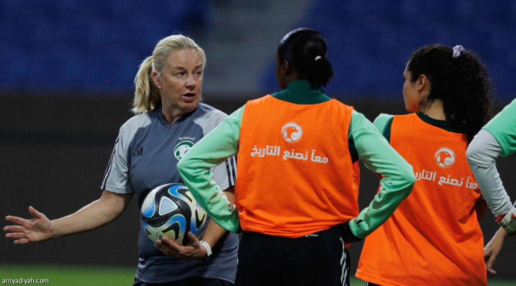 الفنلندية روزا لابي مدربة المنتخب السعودي الأول لكرة القدم للسيدات توجه اللاعبات خلال حصة تدريبية سابقة (أرشيفية)