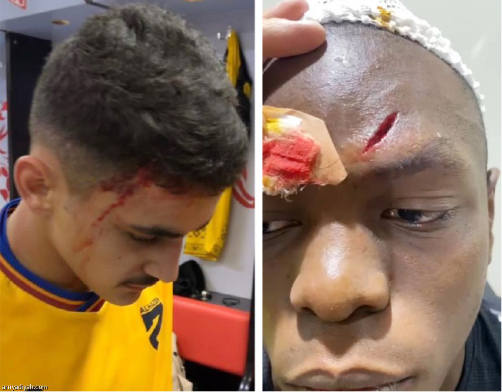 صورتان التقطتا أمس الأول لمشاري الحويل وعبد الله هوساوي، لاعبَي الحزم، تُظهران إصاباتهما بعد تلقي العلاج (صورتان خاصتان بـ ”الرياضية”)