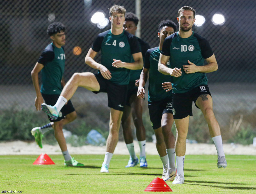 صورة التقطت أمس للإنجليزي جوردان هندرسون، قائد فريق الاتفاق، خلال التدريبات اللياقية (المركز الإعلامي ـ الاتفاق)