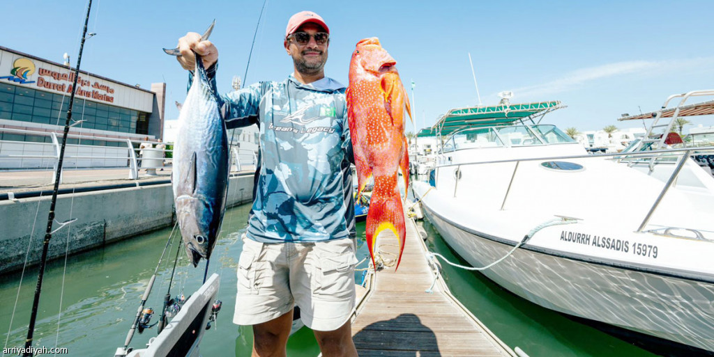 صورة التقطت أمس لأحد المشاركين بعد الانتهاء من مشاركته بمنافسة صيد الأسماك في بطولة السعودية للصيد الرياضي (المركز الإعلامي ـ الرياضات البحرية)