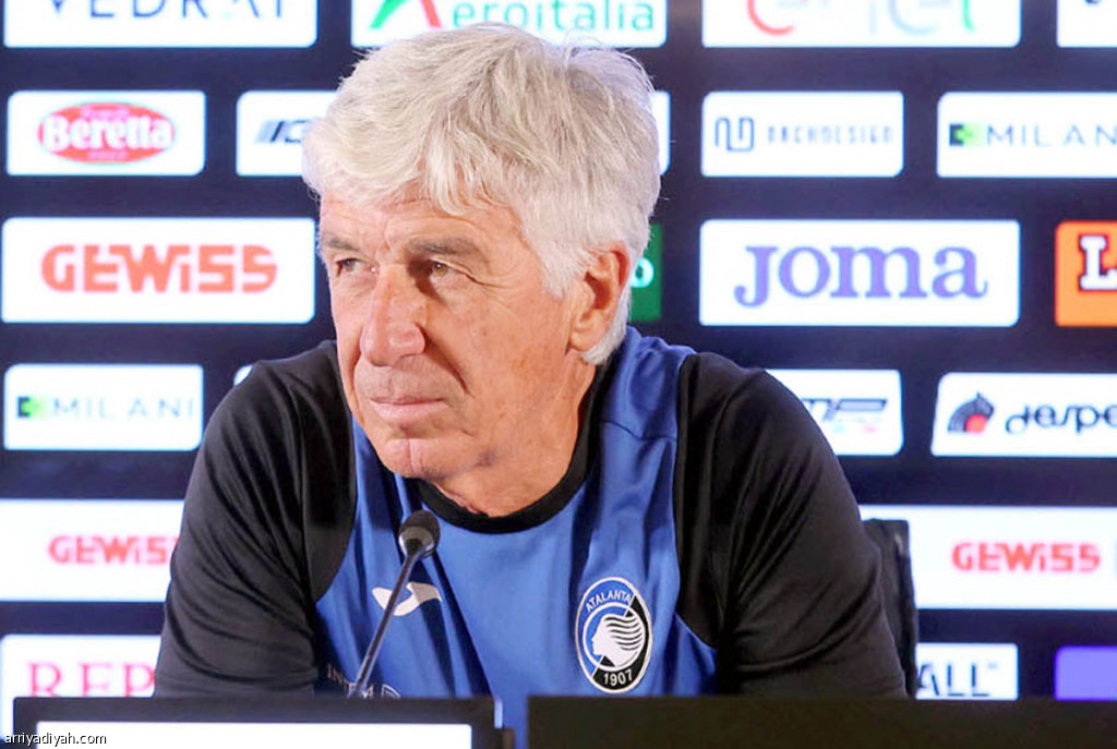 صورة التقطت أمس لجيان جاسبيريني، مدرب أتالانتا، متحدثًا عن استعدادات فريقه لملاقاة إنتر ميلان اليوم (المركز الإعلامي ـ أتالانتا)