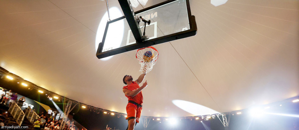 صورة التقطت أمس لأحد المشاركين في مسابقة التسديد الطائر ”دنكن” ضمن فعاليات بطولة نيوم 3×3 تشالنجر لكرة السلة في نيوم والتي تختتم اليوم (المركز الإعلامي ـ اتحاد السلة)