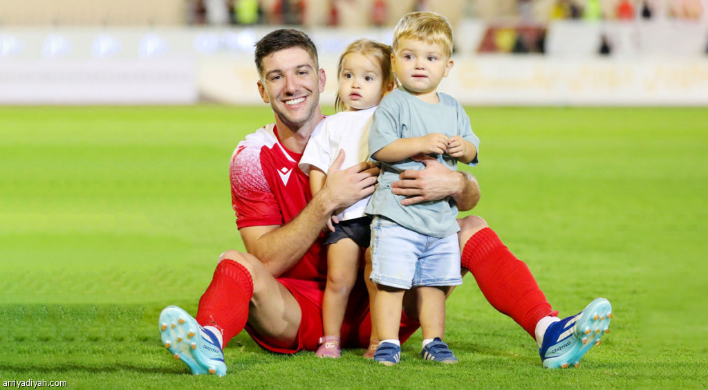صورة التقطت أمس الأول للأرجنتيني لوسيانو فييتو، لاعب فريق القادسية، مع أطفاله عقب الفوز على العربي بهدفين مقابل هدف (المركز الإعلامي ـ القادسية)