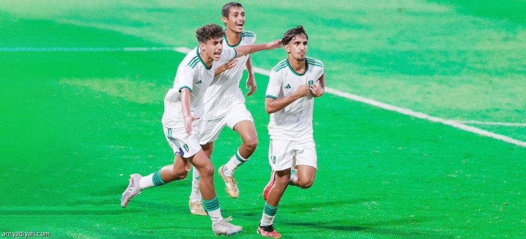 صورة التقطت أمس للاعبي فريق الأهلي تحت 17 عامًا لكرة القدم يحتفلون بالهدف الثاني في مرمى الاتفاق في اللقاء الذي جرى ضمن الجولة الثامنة وانتهى أهلاويًّا 2ـ1 (المركز الإعلامي ـ الأهلي)