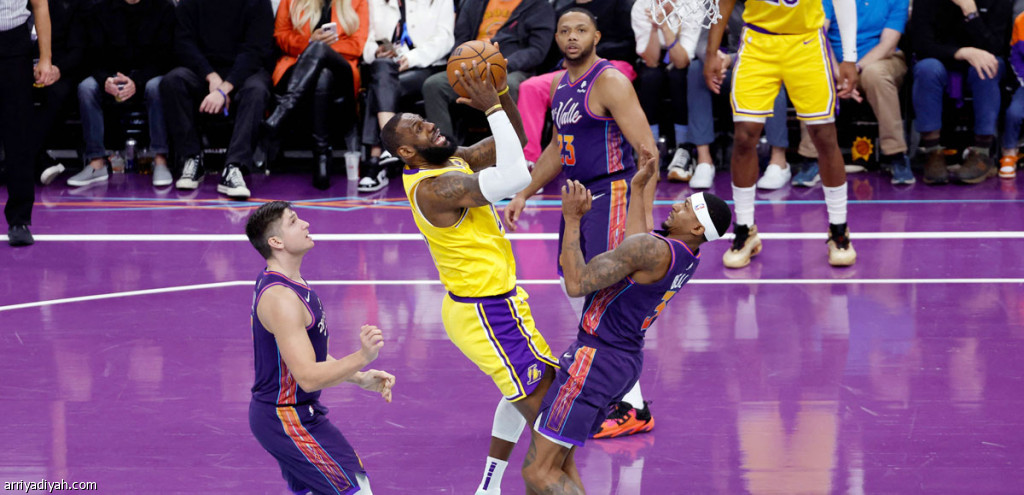تخطى الأمريكي ليبرون جيمس إصابة مبكرة وسجّل 32 نقطة في طريقه لقيادة فريقه لوس أنجليس ليكرز إلى قلب تأخره أمام فينيكس صنز إلى فوز أول خارج أرضه 122-119، أمس، في دوري كرة السلة الأمريكي للمحترفين، بعد تعرّضه لإصابة في أسفل ساقه اليسرى جعلته يعرج في الربع الأوّل، وتجاهل، ابن الـ 38 عامًا، ألمه وأسهم في وضع حد لسلسة من ثلاث خسارات متتالية لليكرز.