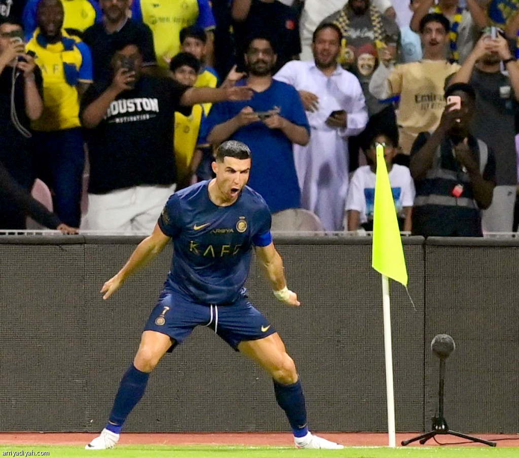 صورة التقطت أمس البرتغالي كريسيتانو رونالدو، قائد النصر، يحتفل بالهدف الثالث (المركز الإعلامي ـ النصر)