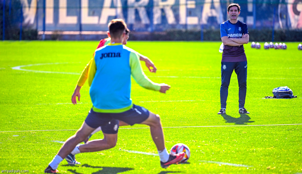 صورة التقطت أمس لمارسيلينو، مدرب فياريال الجديد، يتابع الحصة التدريبية لفريقه على ملعب سيراميكا (الأوروبية)