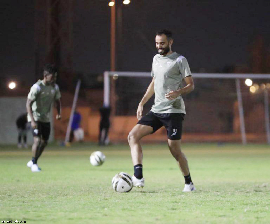 صورة التقطت أمس لنواف بوعامر لاعب فريق هجر الأول لكرة القدم أثناء مشاركته في التدريبات الجماعية (المركز الإعلامي ـ هجر)