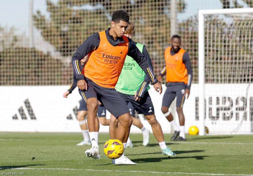 صورة التقطت أمس للاعب الوسط الإنجليزي جود بلينجهام يشارك في التدريبات الجماعية لريال مدريد بعد تعافيه من الإصابة (المركز الإعلامي- ريال مدريد)