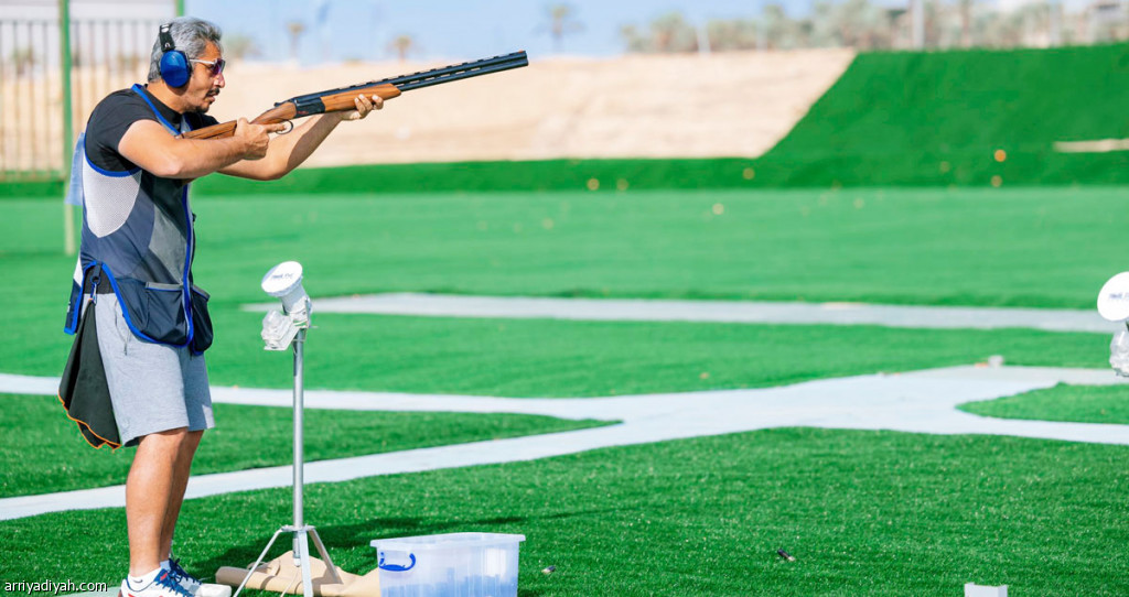 صورة التقطت أمس لأحد الرماة يستعدُّ للمشاركة في منافسات البندقية الهوائية 10م ضمن منافسات دورة الألعاب السعودية(المركز الإعلامي ـ الألعاب السعودية)