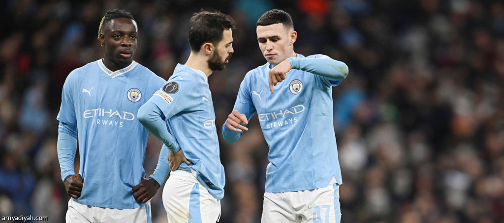 صورة التقطت أمس الأول لفودين وبرناردو سيلفا وجيريمي دوكو، لاعبي مانشستر سيتي، خلال مباراتهم أمام لايبزيج الألماني (الفرنسية)