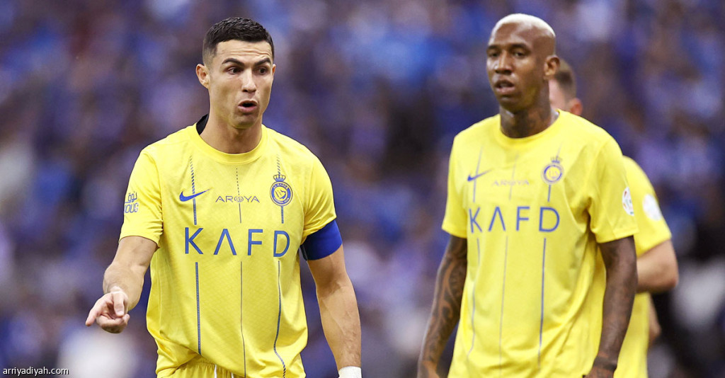 صورة التقطت أمس الأول للبرازيلي أندرسون تاليسكا، مهاجم النصر، في نقاش مع زميله البرتغالي كريستيانو رونالدو خلال ديربي الرياض تصوير: سعد العنزي