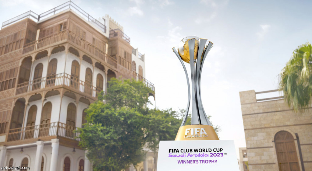 صورة التقطت أمس لمجسَّم كأس العالم للأندية فيفا السعودية 2023 في جدة التاريخية (واس)
