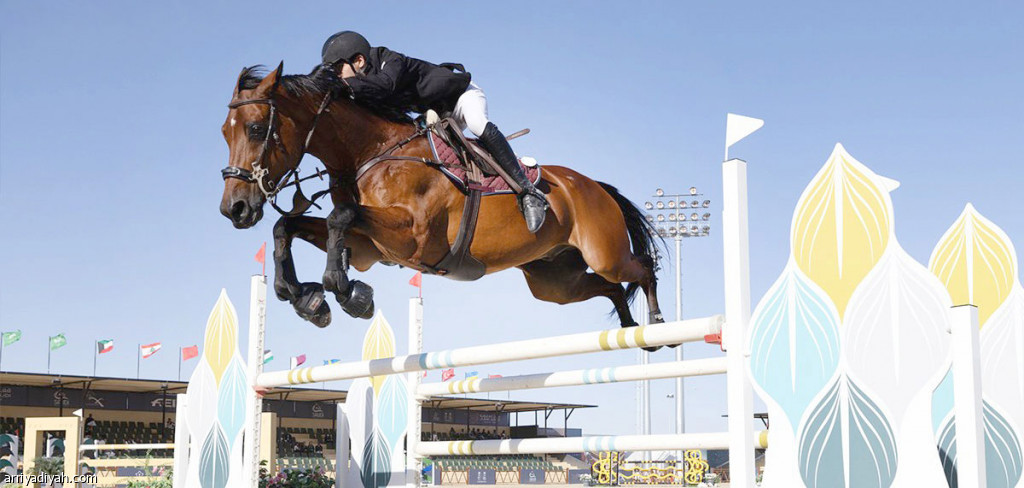 صورة التقطت أمس لأحد الفرسان أثناء مشاركته في بطولة قفز السعودية المؤهلة إلى كأس العالم (المركز الإعلامي ـ اتحاد الفروسية)