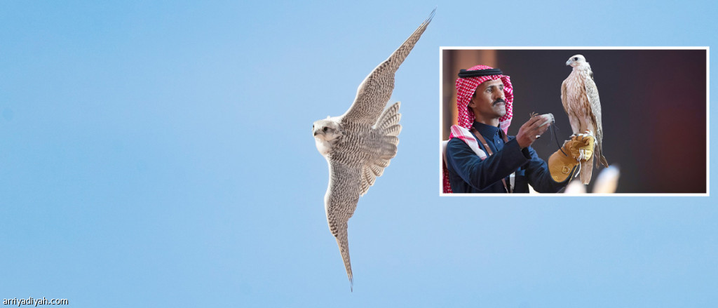 صورة التقطت أمس لأحد الصقور محلقًا في اليوم الأول من بطولة كأس العلا للصقور.. وفي الإطار أحد المشاركين مع صقره (المركز الإعلامي ـ اللجنة المنظمة)