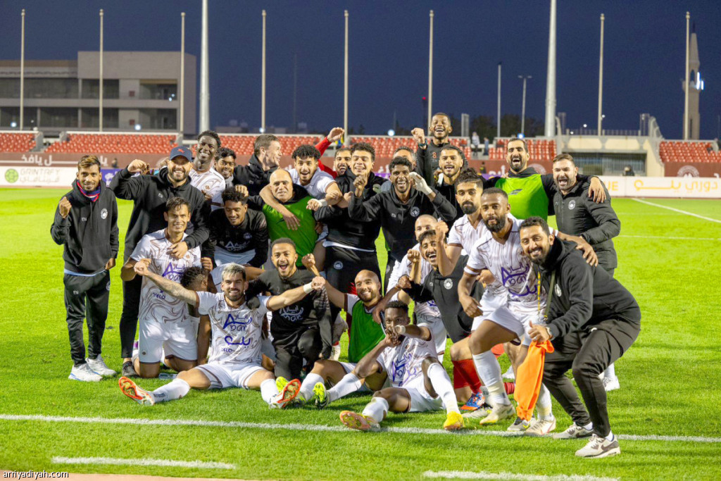 صورة التقطت أمس للاعبي الجبلين يحتفلون بالفوز على العروبة والتقدم إلى المركز الثاني تصوير: ثامر الدبي