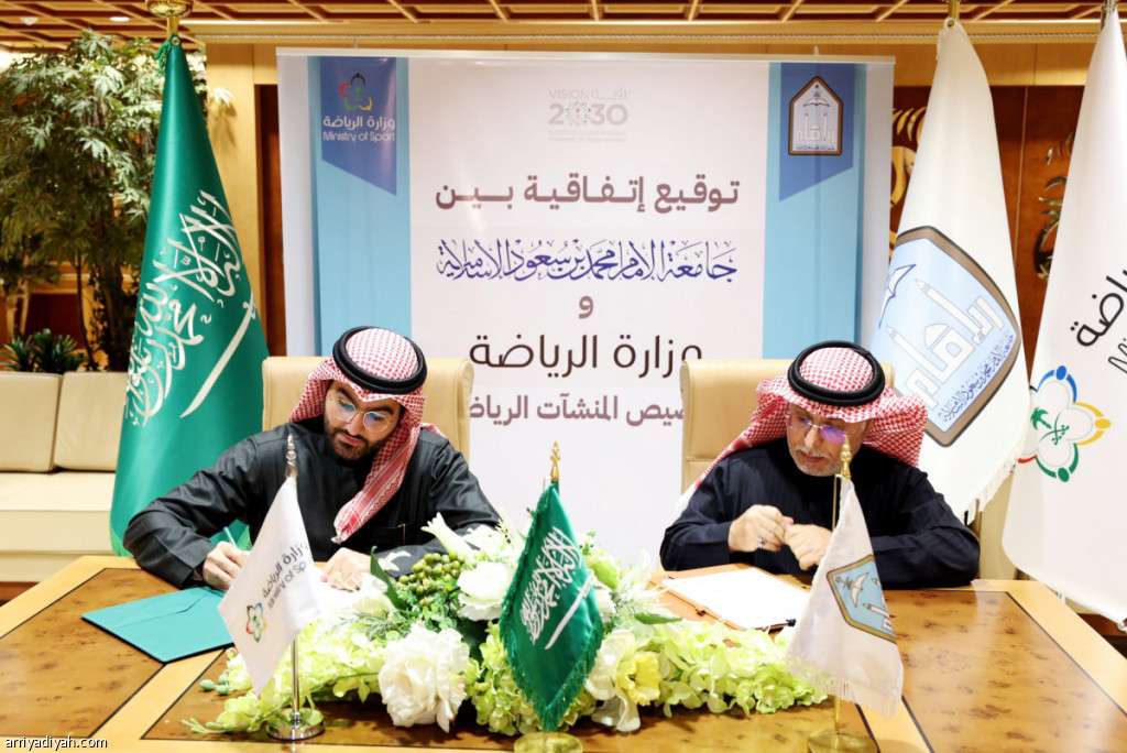 وقَّعت وزارة الرياضة، مساء أمس، اتفاقية تعاون مشترك مع جامعة الإمام محمد بن سعود الإسلامية، لتخصيص المنشآت الرياضية في الجامعة لصالح الوزارة لمدة 10 أعوام، حيث جرت مراسم التوقيع بين بدر القاضي، نائب وزير الرياضة، والدكتور أحمد العامري، مدير جامعة الإمام محمد بن سعود الإسلامية، وذلك بمقر المدينة الجامعية في الرياض.