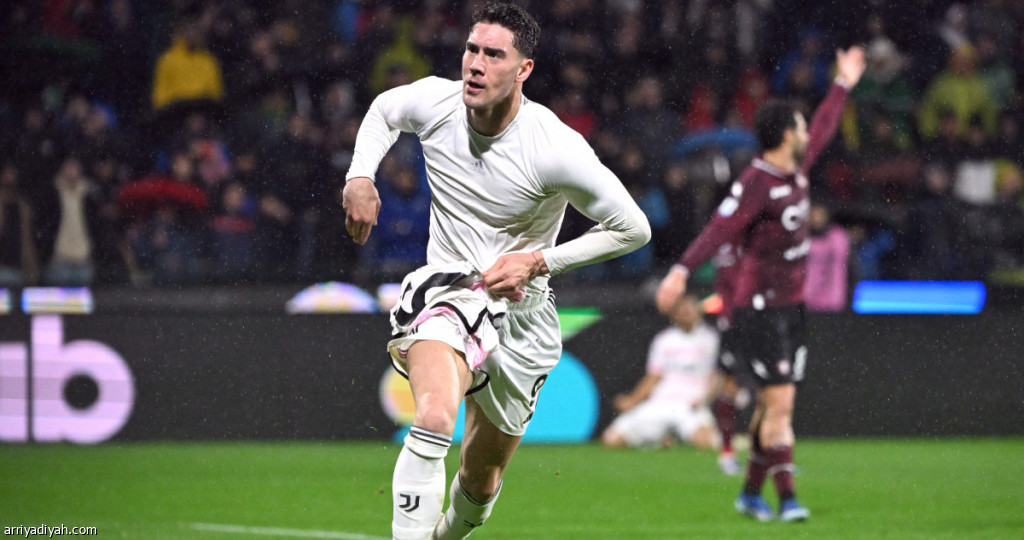 دوسان فلاهوفيتش لاعب يوفنتوس يحتفل بتسجيل الهدف في مرمى ساليرنتينا، خلال المواجهة التي جمعت الفريقين في الدوري الإيطالي، الأحد. (رويترز)