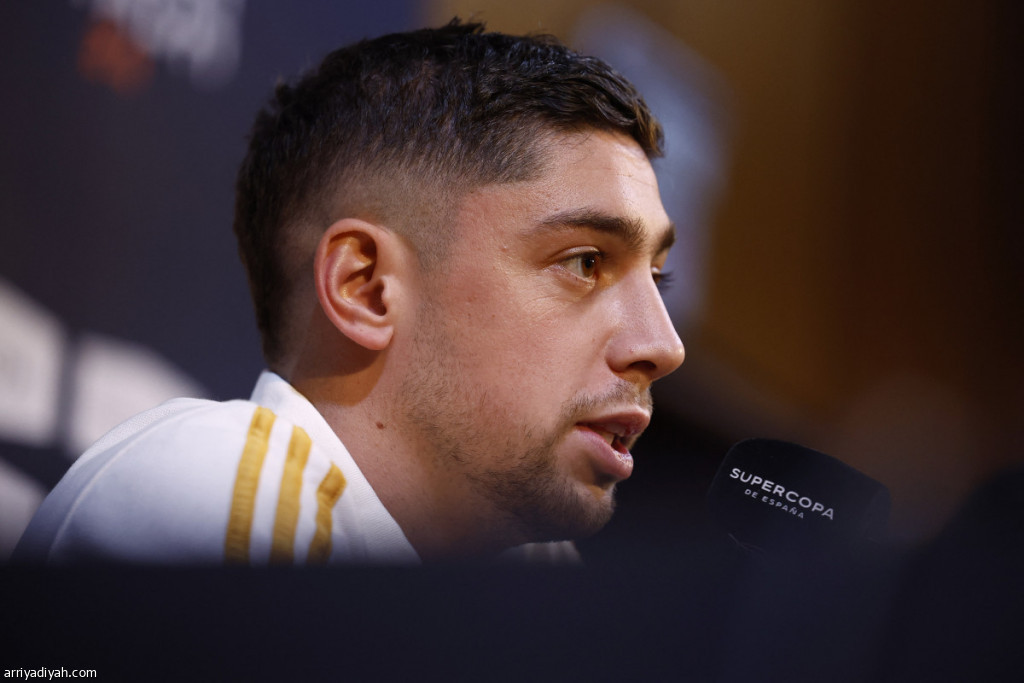الأوروجوياني فيديريكو فالفيردي لاعب ريال مدريد الإسباني يتحدث في المؤتمر الصحافي الذي يسبق مواجهة أتلتيكو مدريد في نصف نهائى السوبر الإسباني.