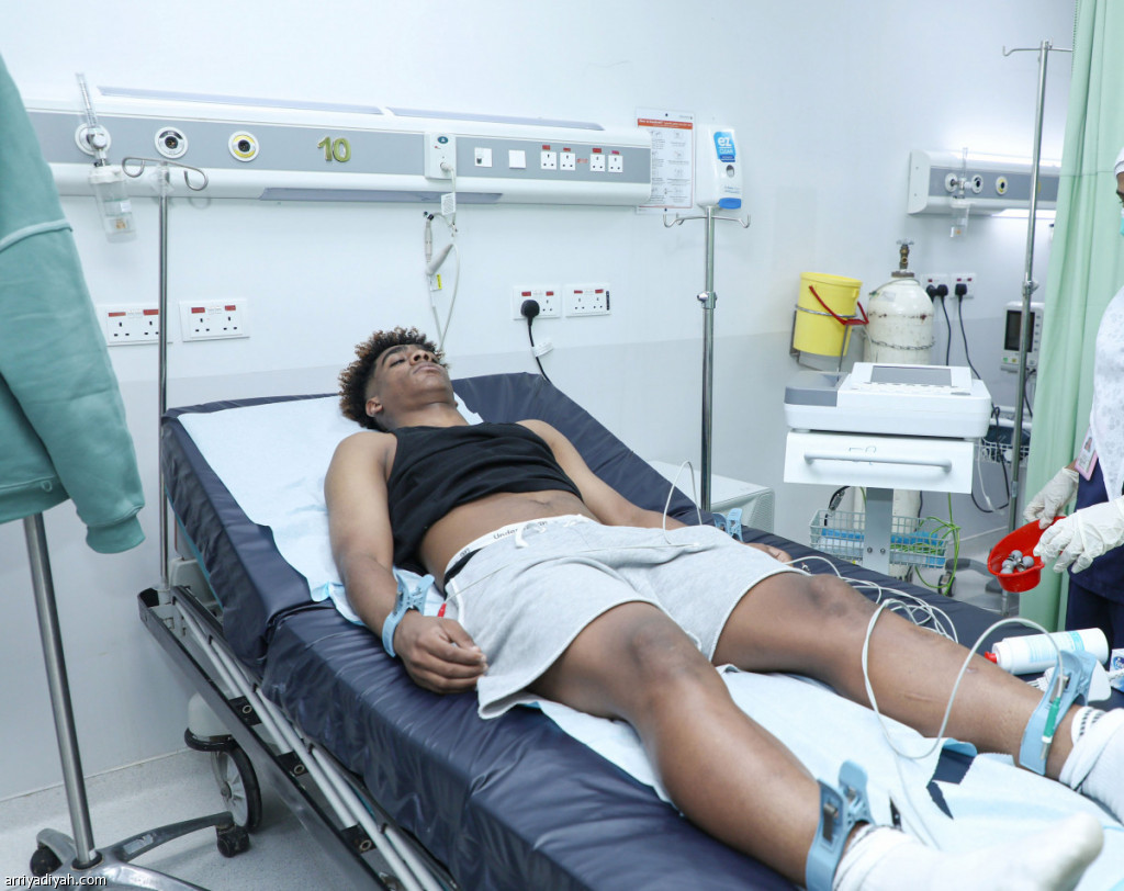 صورة التقطت أمس لحسام مجرشي، لاعب الفيحاء، خلال خضوعه للفحص السريري في مستشفى الملك خالد (المركز الإعلامي ـ الفيحاء)