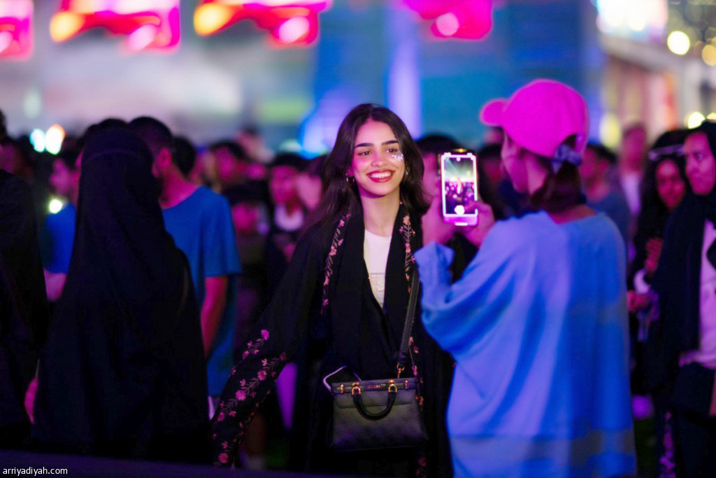 زائرة تلتقط صورة تذكارية أثناء وجودها في منطقة "آسيا الصغرى" في جدة (المركز الإعلامي ـ تقويم جدة)