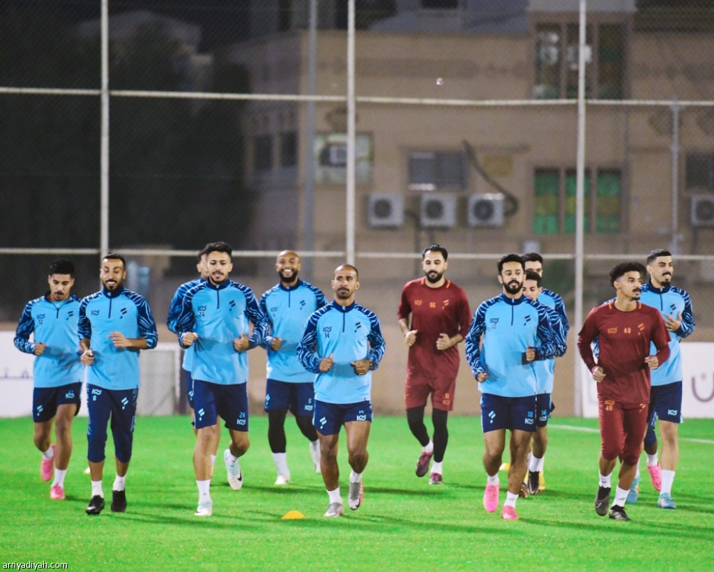جانب من الحصة التدريبية لفريق الفتح، الإثنين، خلال فترة توقف دري روشن السعودي (المركز الإعلامي ـ الفتح)