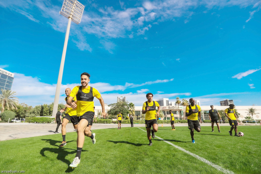 لاعبو فريق الاتحاد الأول لكرة القدم يؤدون التدريب الاخير في معسكر دبي الذي اختتم الاثنين (المركز الاعلامي ـ الاتحاد)