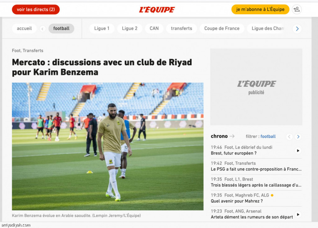 كشفت صحيفة «ليكيب» الفرنسية، الإثنين، عن أن أحد أندية الرياض، العاصمة السعودية، ترغب في كسب خدمات النجم الفرنسي كريم بنزيما، مهاجم فريق الاتحاد الأول لكرة القدم، خلال فترة الانتقالات الشتوية الجارية حاليًّا.