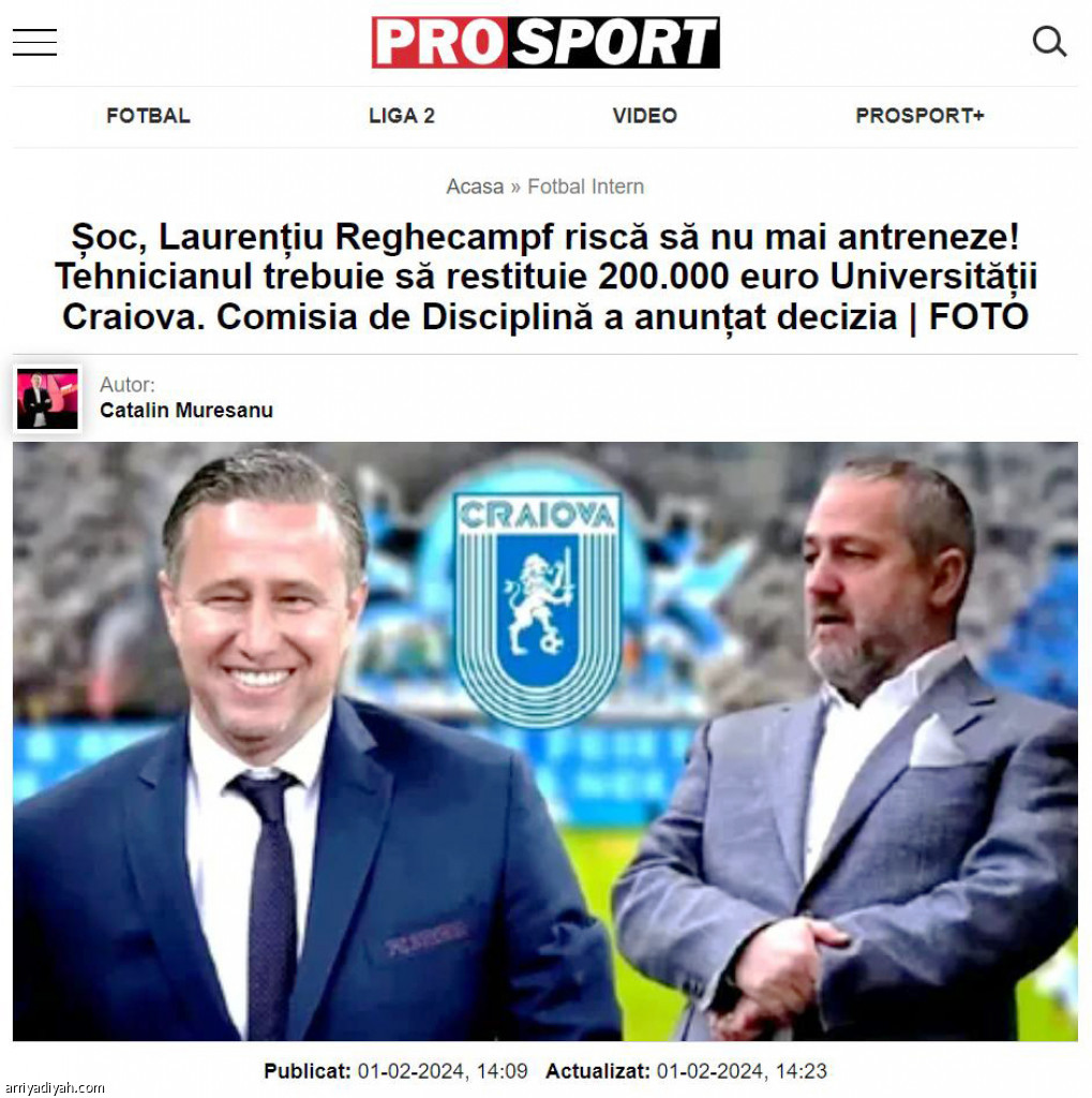 وكان ميهاي روتارو، رئيس ومالك كرايوفا، قد سمح لريجيكامب بالانتقال إلى السعودية، لكن القضية تفاقمت لعدم سداد المدرب الروماني المبلغ بعد مرور 4 أشهر.