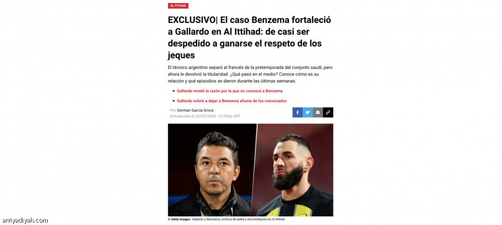 رفض دومينيجوز سواريز، المدير التنفيذي في نادي الاتحاد، ورامون بلانيس، المدير الرياضي المنصَّب حديثًا، أصواتًا داخل الإدارة، طلبت التضحية بالأرجنتيني مارسيلو جاياردو، مدرب الفريق الأول لكرة القدم، من أجل احتواء أزمة كريم بنزيما، حينما كان مستبعدًا، وفقًا لموقع «BOLAVIP» الأرجنتيني، الأربعاء.