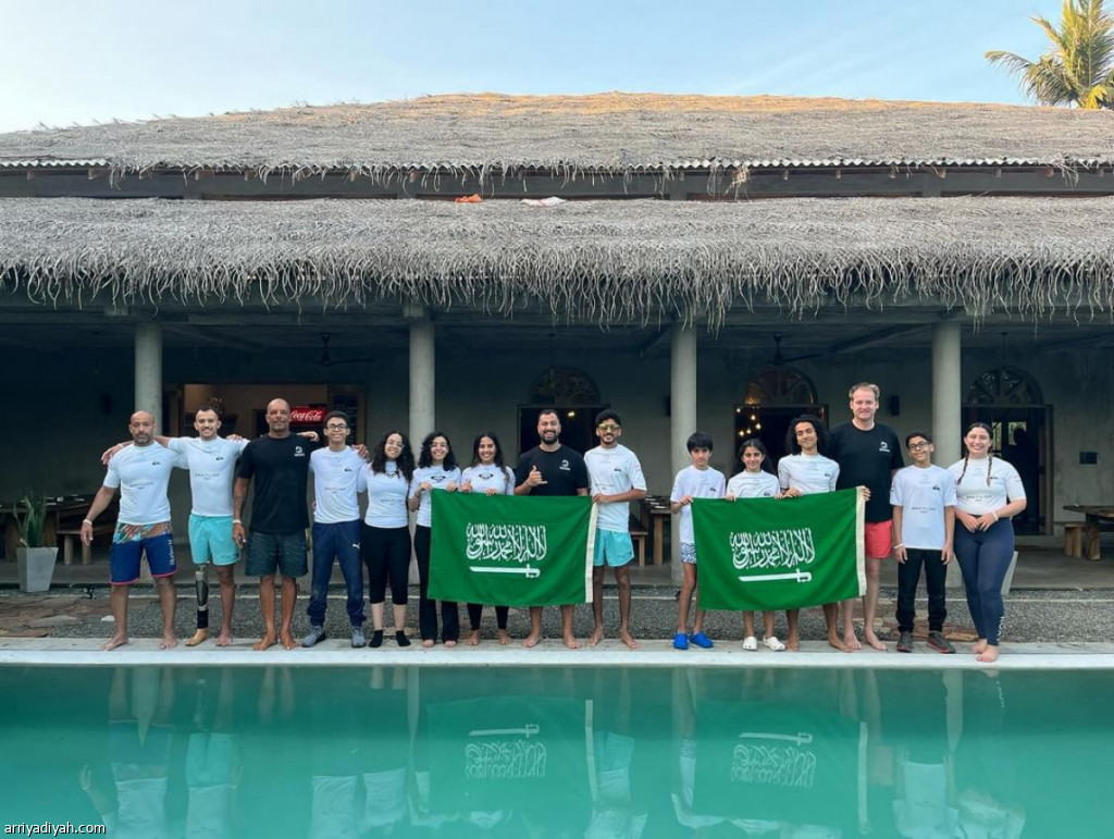 لاعبو ولاعبات المنتخب السعودي لرياضة ركوب الأمواج أثناء تدشين المعسكر الخارجي في سريلانكا اليوم الثلاثاء (المركز الإعلامي ـ اتحاد ركوب الأمواج)
