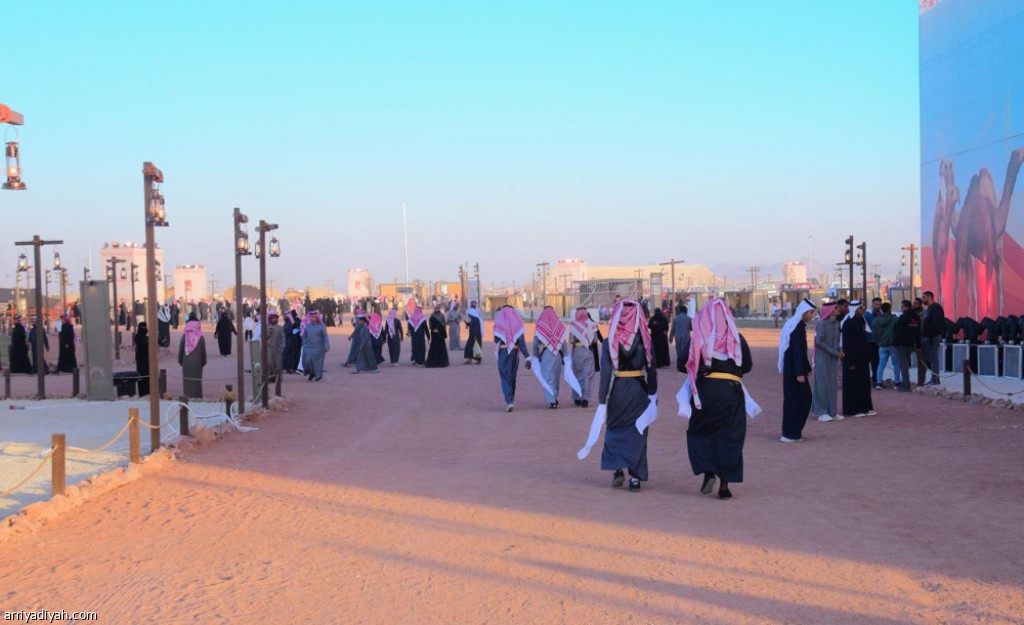 الزوار أثناء تجولهم في مقر تنظيم مهرجان جادة الإبل في حائل شمال السعودية (المركز الإعلامي ـ جادة الإبل)