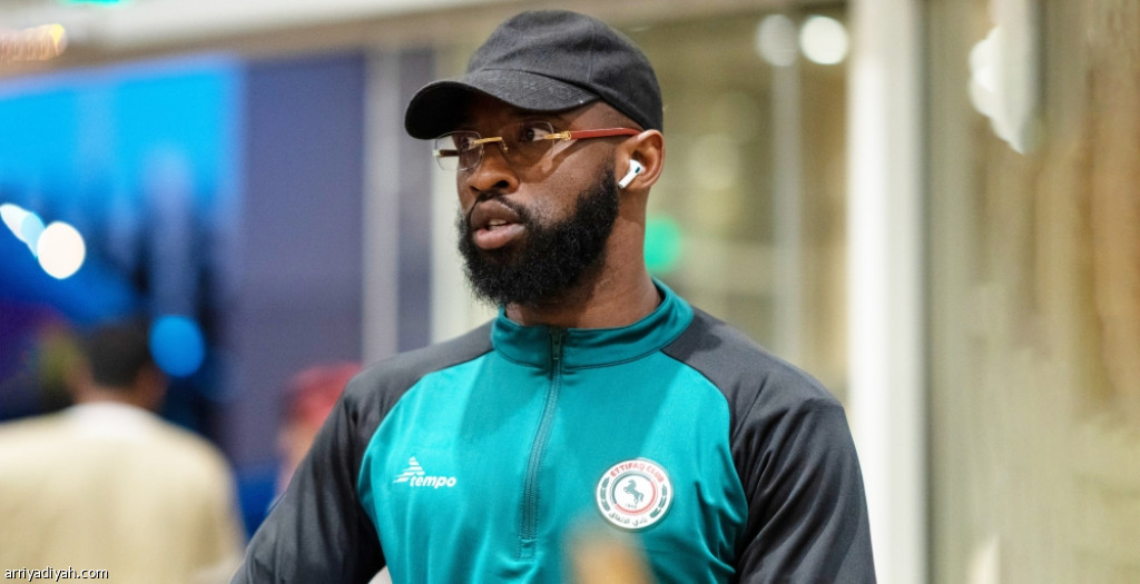 موسى ديمبيلي، مهاجم فريق الاتفاق الأول لكرة القدم بعد وصوله برفقة زملاءه اللاعبين إلى خميس مشيط مساء الجمعة استعداد لمواجهة ضمك السبت (المركز الاعلامي ـ الاتفاق)