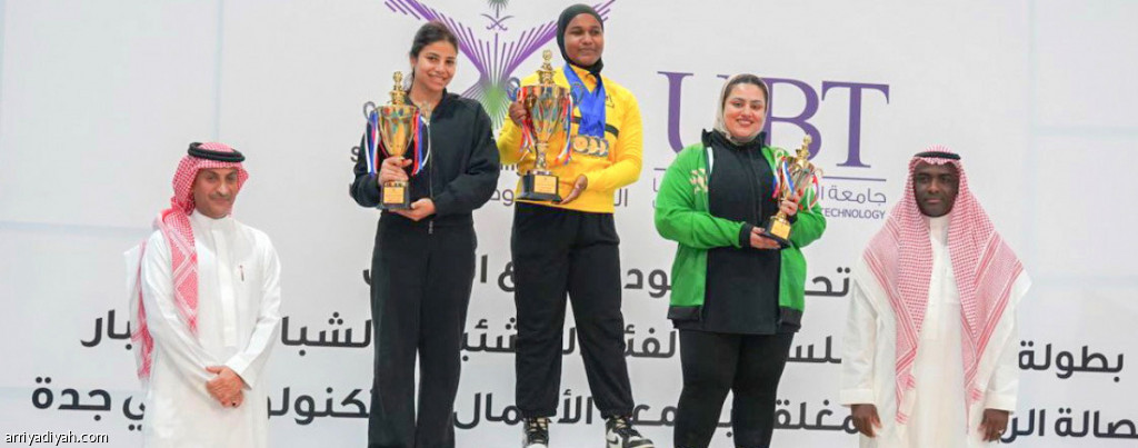 الرباعات المشاركات في بطولة كأس السعودية للسيدات أثناء تتويجهن (المركز الإعلامي ـ الاتحاد السعودي لرفع الأثقال)