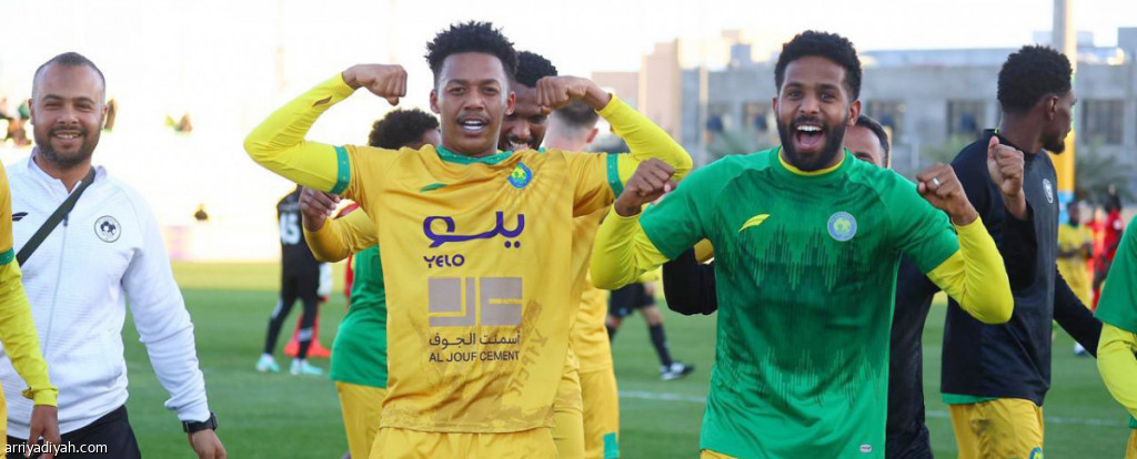 جانب من فرحة لاعبي فريق العروبة الأول لكرة القدم بعد الفوز على القيصومة بهدف دون مقابل في دوري يلو    (المركز الإعلامي ـ العروبة)