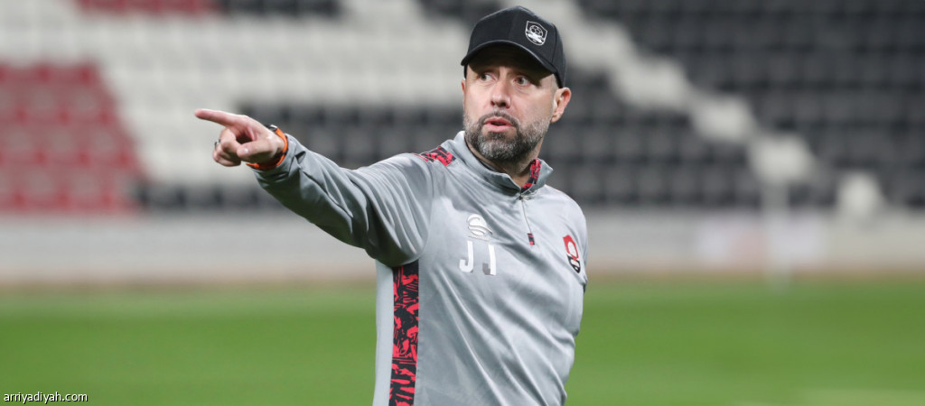الكرواتي إيجور يوفيتفيتش مدرب فريق الرائد الأول لكرة القدم يوجه اللاعبين في التدريبات (المركز الإعلامي ـ الرائد)