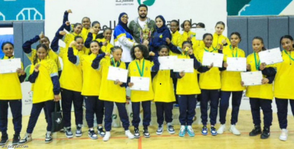 لاعبات النصر خلال تتويجهن ببطولة السعودية للمصارعة النسائية للناشئات تحت 15 عامًا (المركز الإعلامي ـ النصر)