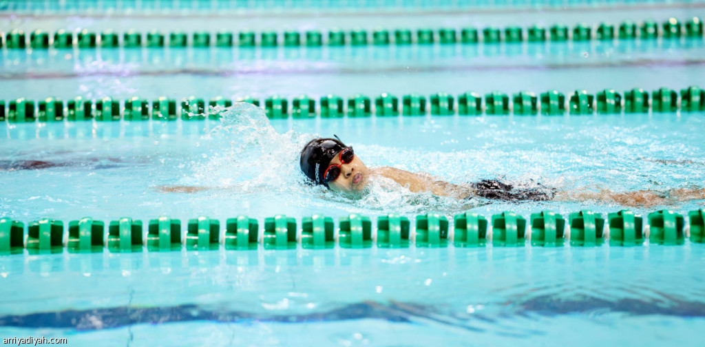 أحد السباحين أثناء مشاركته في بطولة الأندية الغربية والهيئات ومراكز الاتحاد الأولمبي لجميع الفئات العمرية (المركز الإعلامي - اتحاد السباحة)