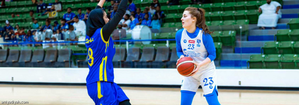 لطيفة البكري لاعبة فريق الهلال لكرة السلة للسيدات تحاول لعب الكرة خلال مواجهة النصر السبت (المركز الإعلامي ـ الهلال)