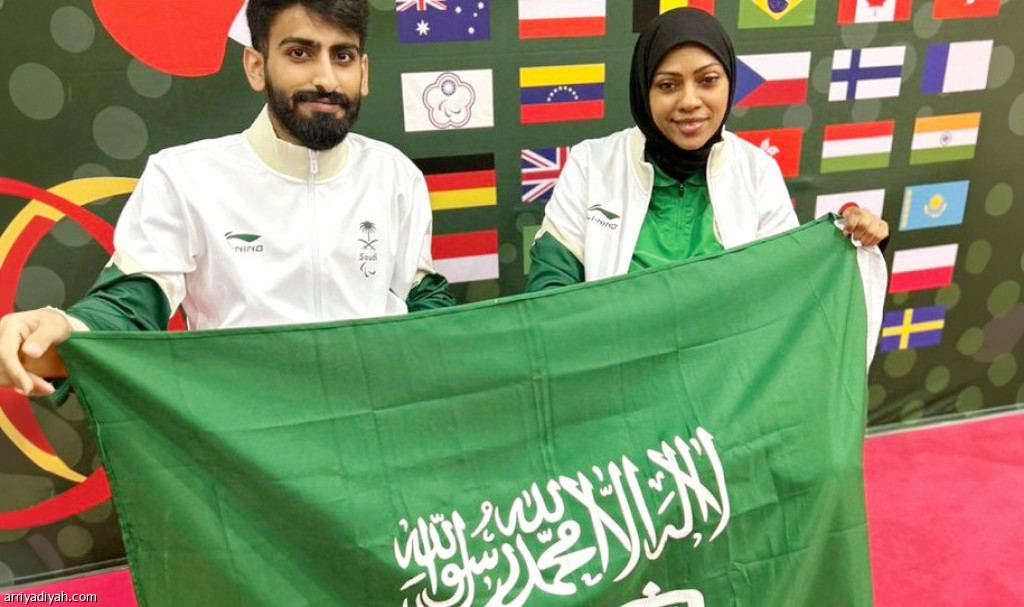 مريم المريسل وإبراهيم آل حسن لاعبا المنتخب السعودي بعد تحقيقهما الميدالية الفضية الخميس (المركز الإعلامي ـ الاتحاد السعودي لكرة الطاولة)