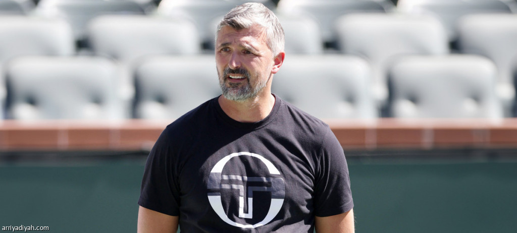 الكرواتي جوران إيفانيسيفيتش مدرب الصربي نوفاك ديوكوفيتش يتابع تدريبات لاعبه استعدادًا لبطولة «بي إن بي باريبا» المفتوحة في حديقة إنديان ويلز للتنس 5 مارس الماضي بإنديان ويلز في كاليفورنيا (الفرنسية)