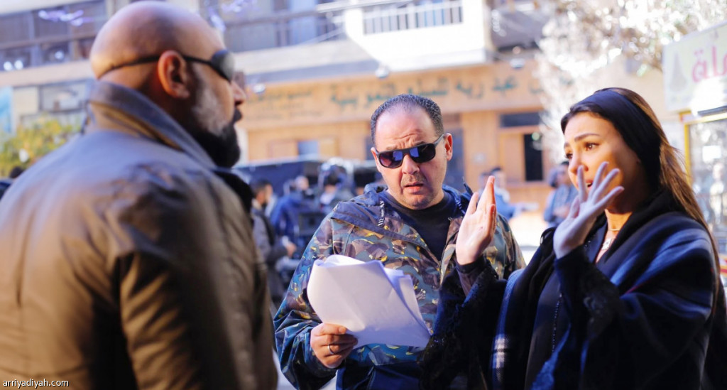 الممثلان دينا فؤاد، ووليد فواز، مع المخرج إسماعيل فاروق، في بروفة أحد المشاهد التمثيلية في مسلسل «حق عرب» (المركز الإعلامي - شركة سنرجي للإنتاج)