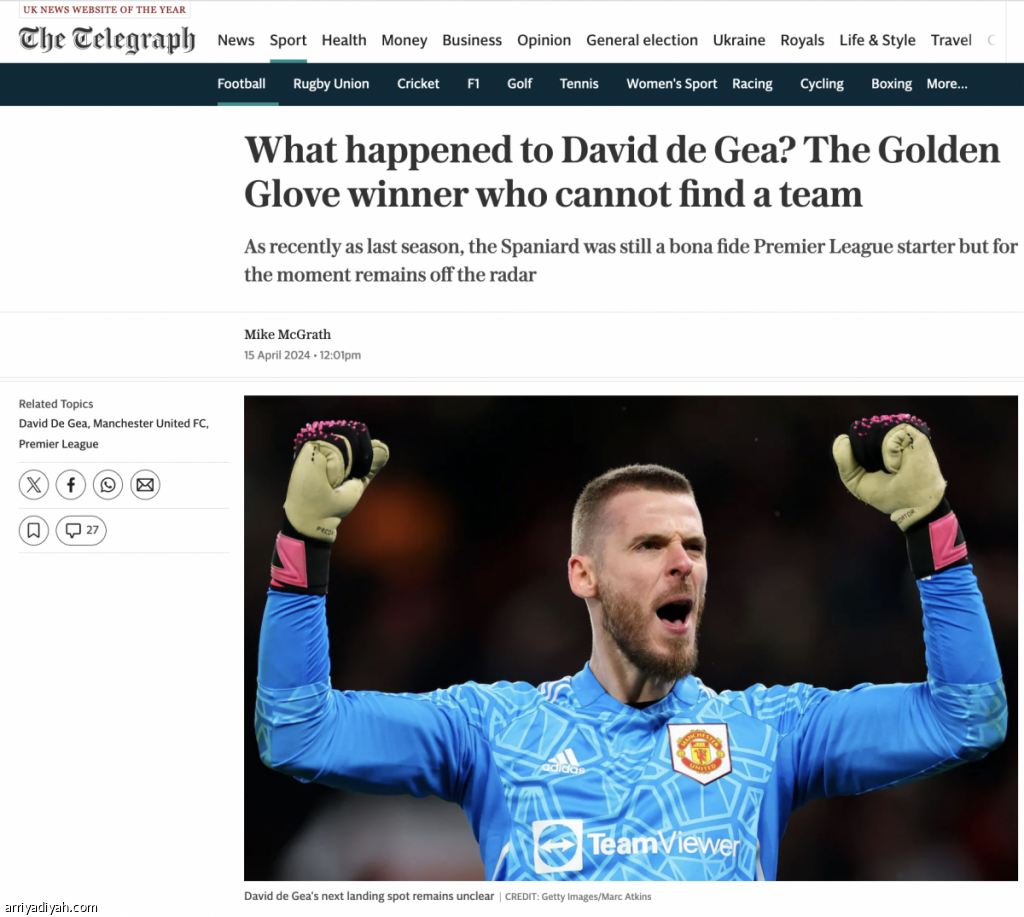 أسهم منح أندية دوري روشن السعودي أولوية التعاقد لمراكز أخرى غير حراسة المرمى في بقاء الإسباني ديفيد دي خيا، الحارس المخضرم، دون نادٍ منذ غادر مانشستر يونايتد الإنجليزي قبل عشرة أشهرٍ، حسب تحليل صحيفة «ذا تليجراف» البريطانية.