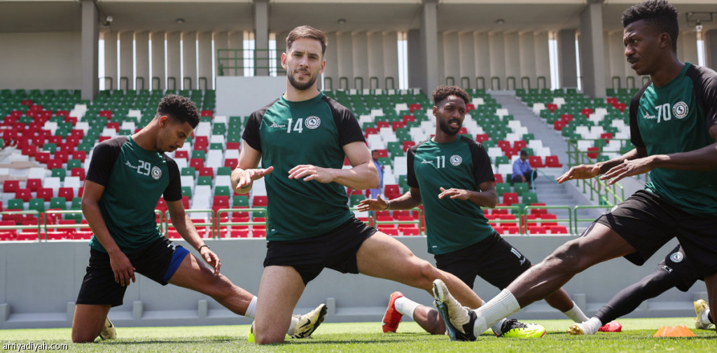 لاعبو فريق الاتفاق الأول لكرة القدم خلال الحصة التدريبية، الأربعاء (المركز الإعلامي ـ الاتفاق)
