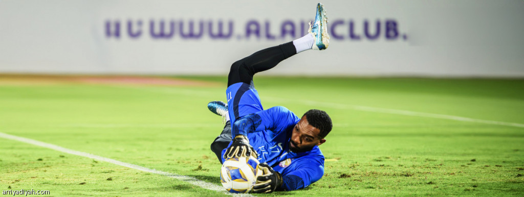 خالد عيسى حارس مرمى فريق العين الإماراتي الأول لكرة القدم يتصدى لكرة خلال التدريب الأخير قبل المغادرة إلى الرياض (المركز الإعلامي ـ العين)